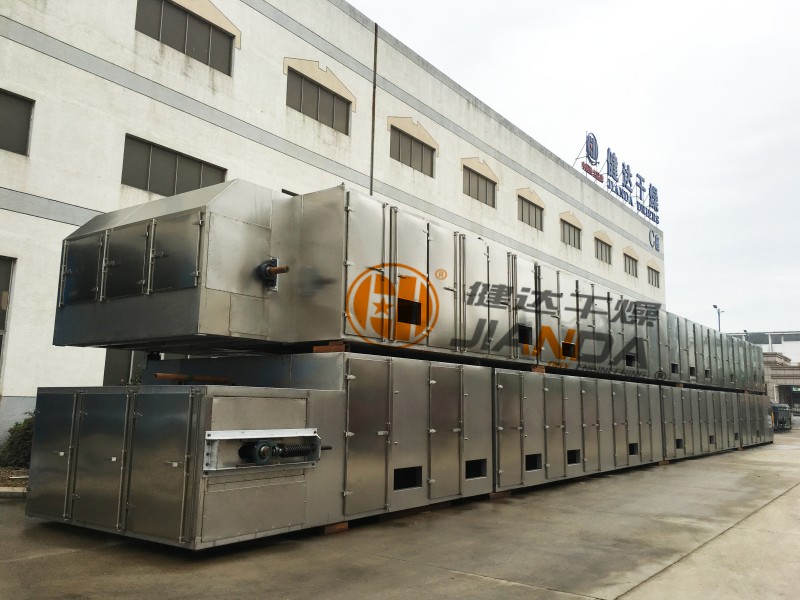 3、標(biāo)準(zhǔn)化生產(chǎn),可根據(jù)產(chǎn)量增加段數(shù)。 將需要處理的物料通過(guò)適當(dāng)?shù)牟剂蠙C(jī)構(gòu),如星型布料機(jī)、擺動(dòng) 帶、粉碎機(jī)或造粒機(jī),分布在輸送帶上,輸送帶通過(guò)一個(gè)或幾個(gè)加熱單元組成的通道,每個(gè)加熱單元均配有空氣加熱和循環(huán)系統(tǒng),每一個(gè)通道有一個(gè)或幾個(gè)排濕系統(tǒng),在輸送帶通過(guò)時(shí),熱空氣從上往下或從下往上通過(guò)輸送帶上的物料,從而使物料能均勻干燥。 干燥的類別:脫水蔬菜、顆粒飼料、味精、雞精、瓜子、椰蓉、有機(jī)顏料、合成橡膠、丙烯纖維、藥品、藥材、小木制品、塑料制品、電子元器件老化,、固化等。